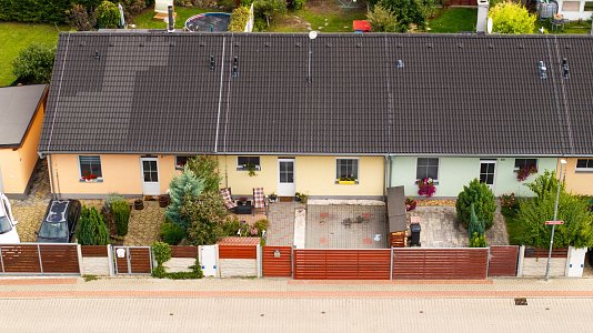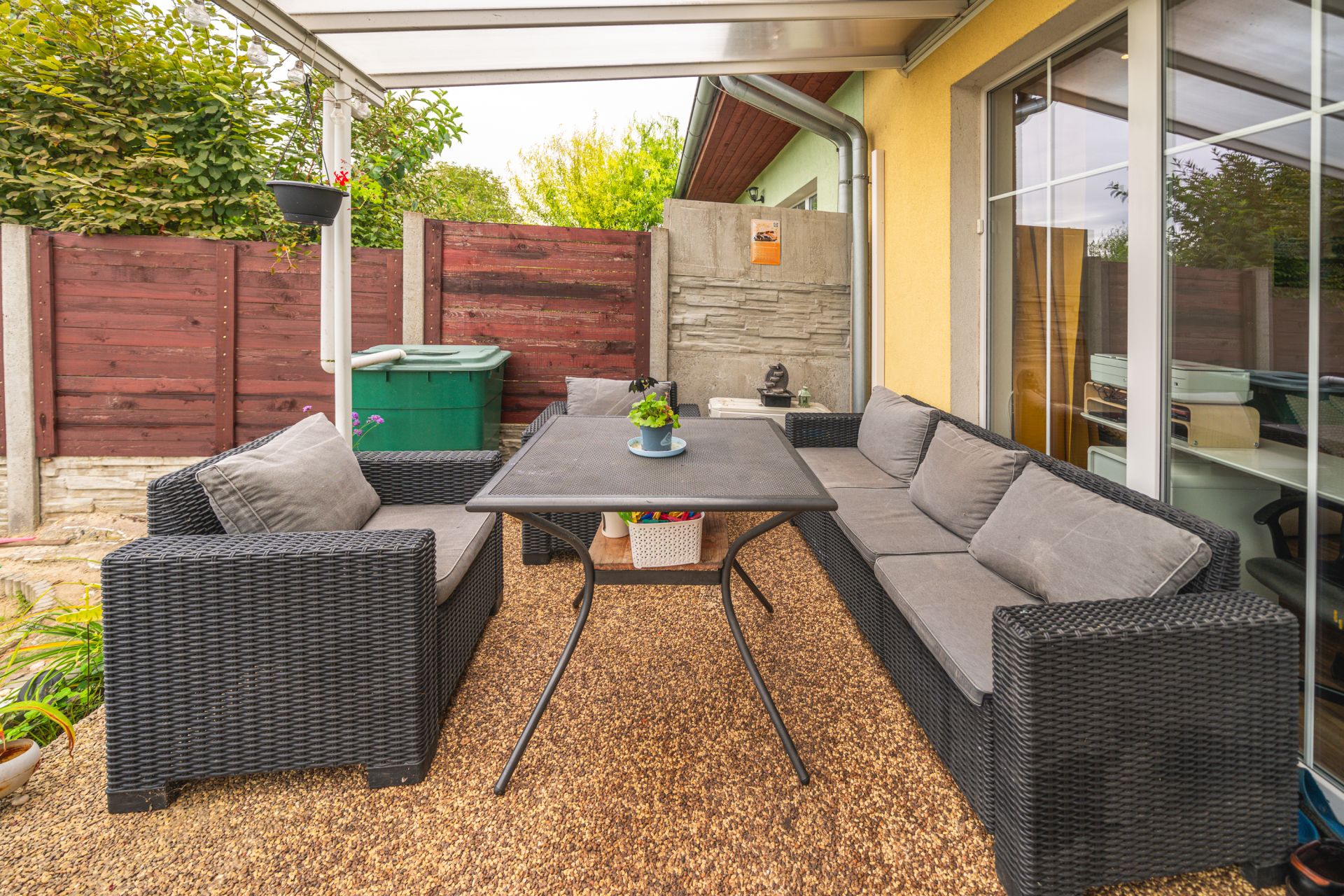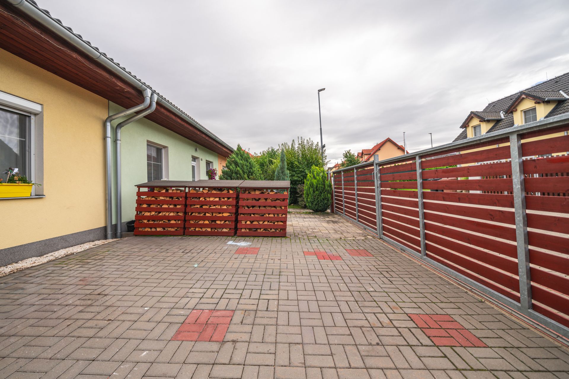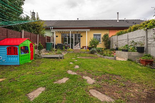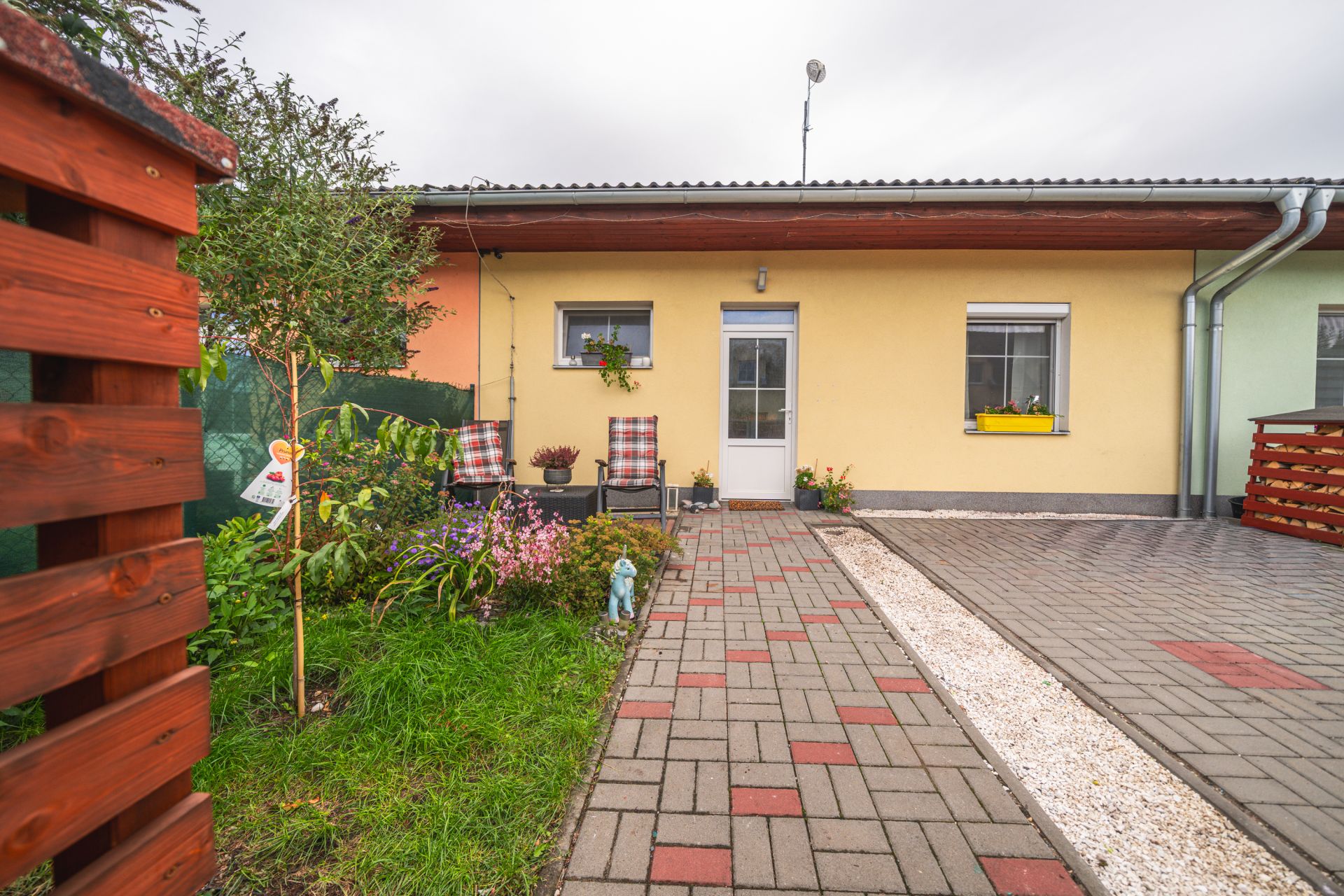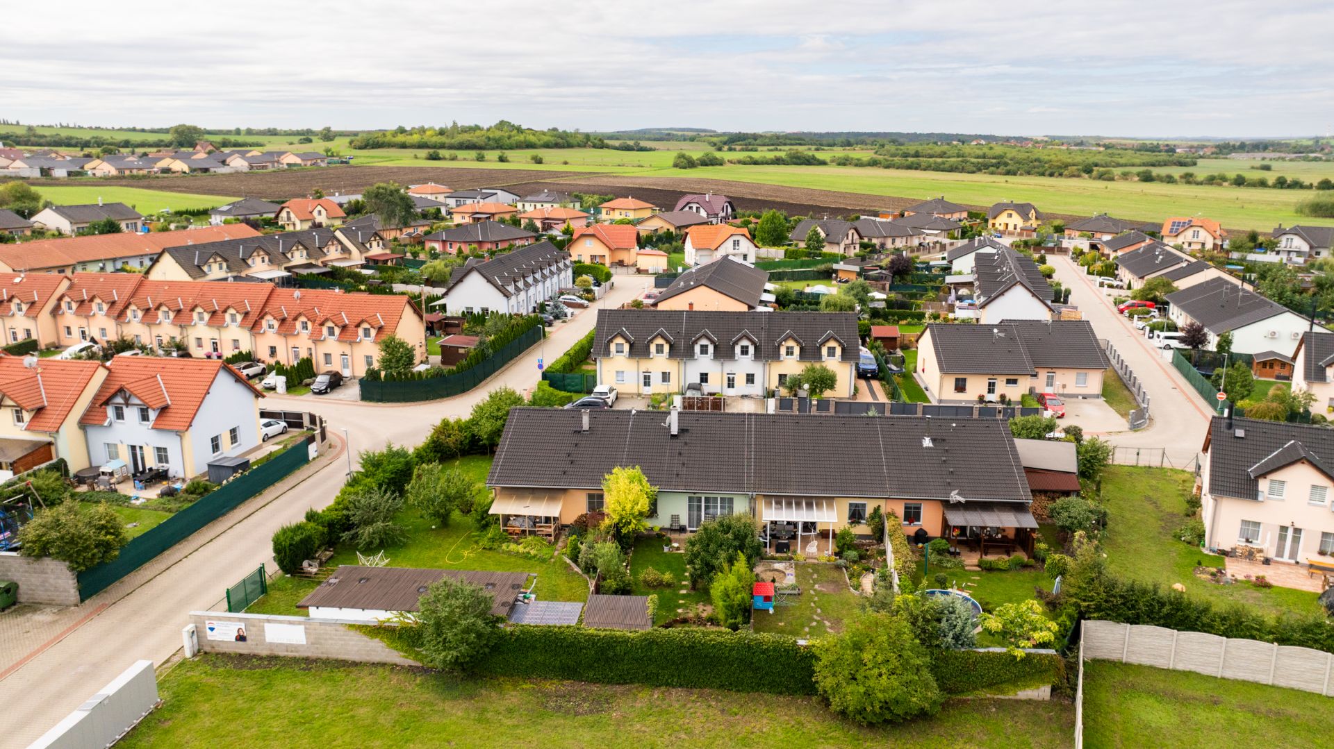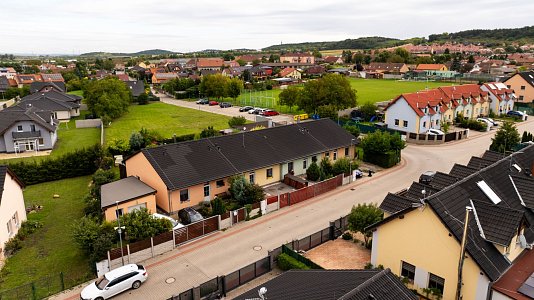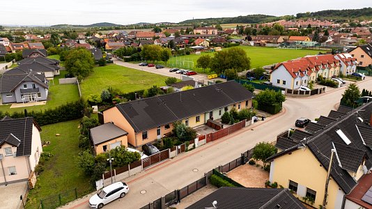 Řadový rodinný dům o dispozici 3+kk s předzahrádkou a terasou na slunném pozemku o celkové výměře 266 m² v klidné části obce Postřižín, okres Praha-východ.