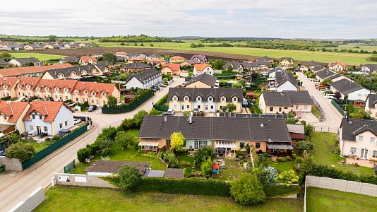Nabízíme k prodeji novostavbu řadového rodinného domu o dispozici 3+kk, s užitnou plochou 91 m², nacházející se na slunném pozemku o celkové výměře 266 m² v klidné části obce Postřižín, okres Praha-východ.